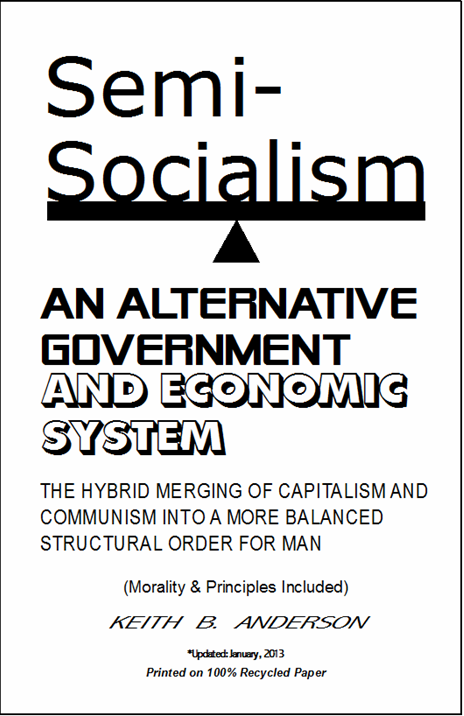 their rate of usage. Semisocialist’s Answer to Socialists: Socialism is necessary in order to ensure that resources are equitably disbursed for the good of all; however, capitalism is a very beneficial agent that encourages creativity and the extra effort to become the most successful that one can be. Capitalism done right is capitalism subjugated under socialism. Socialism properly enforced destroys the ability of greed to harm and marginalize the populace. Money is a very useful medium through which to track and reward individual contributions to society. The quantity of work hours one spends at labor is proportional to the amount of currency that one is paid. Money itself is not the problem. It is the imbalanced distribution of it that creates difficulties and disharmony in society. Semisocialism balances socialism and capitalism. |