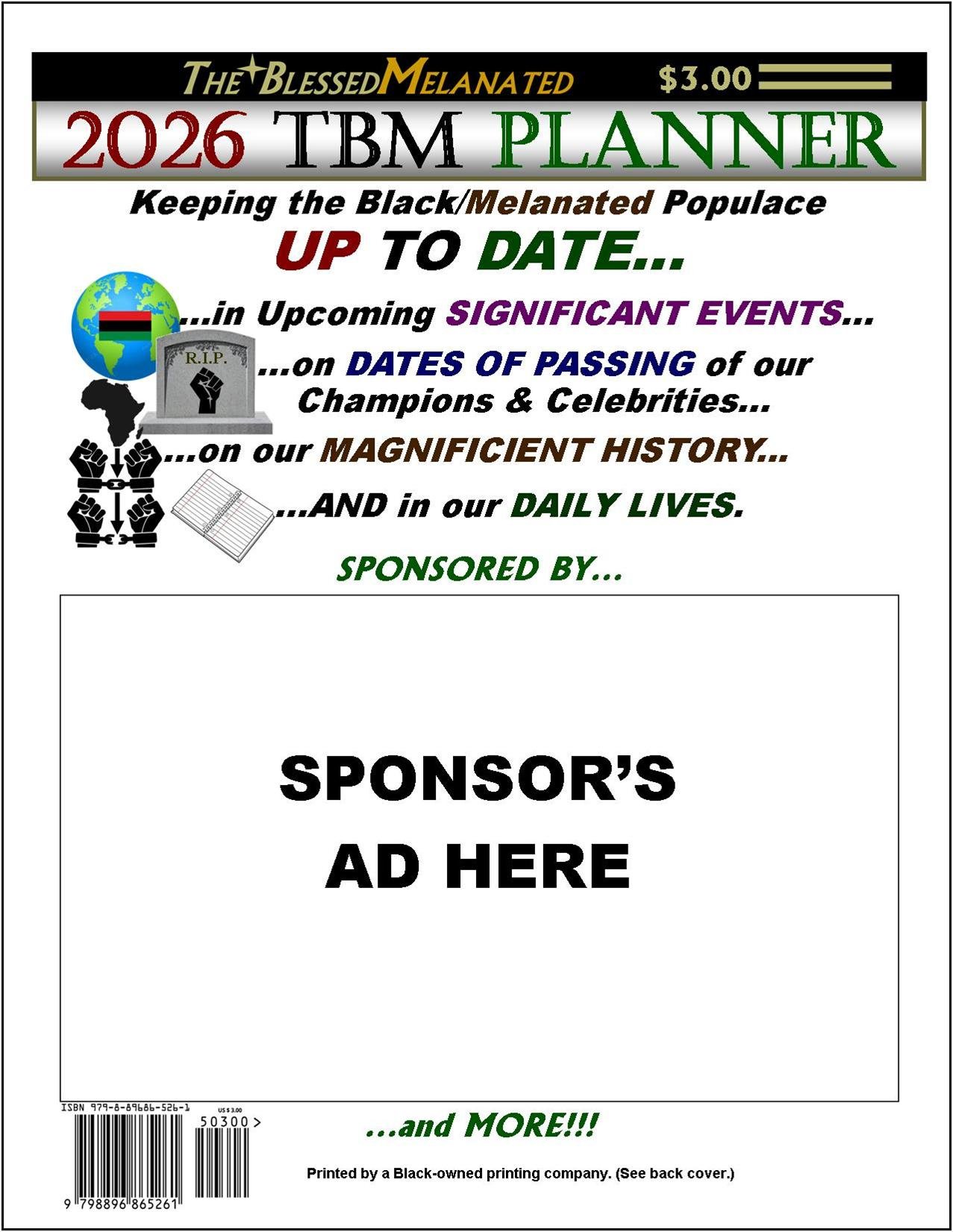 We are hoping that advertising sponsors will underwrite the cost of supplying 2,500 2026 TBM PLANNERS for these students. The PLANNERS are to be gifted to the students upon their return after Christmas Break as a guide to the students to encourage them in both seeing and planning their future and cultural identity through historical facts. Your sponsorship will make this—and more—possible.
